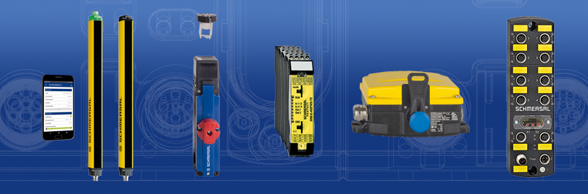 Das Angebotsspektrum von Schmersal mit über 25.000 Produkten umfasst im Bereich der Schutztürüberwachung unter anderem Sicherheitszuhaltungen, Sicherheitssensoren sowie Sicherheitsschalter mit getrenntem Betätiger und solche für drehbare Schutzeinrichtungen. Zum Produktprogramm gehören zudem optoelektronische Sicherheitseinrichtungen wie Sicherheitslichtschranken, -lichtgitter und -vorhänge für die Absicherung von Gefahrstellen an Maschinen und anderen Gefahrbereichen. Darüber hinaus entwickelt und produziert Schmersal Systeme für die sichere Signalverarbeitung wie etwa Sicherheitsrelaisbausteine, Sicherheitsmodule sowie programmierbare modulare Sicherheitssteuerungen , die mit Schutztürschaltern, NOT-HALT-Schaltern und Lichtgittern oder weiteren elektronischen und mechanischen Sicherheitsschaltgeräten gekoppelt werden. Im komplexen Bereich Explosionsschutz bietet Schmersal Ex-Schaltgeräte, die der europäischen ATEX-Richtlinie 2014/34/EU entsprechen.
