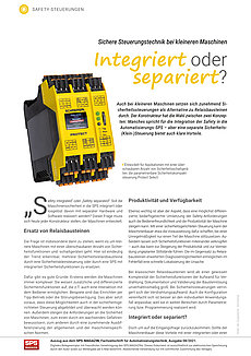 Auch bei kleineren Maschinen setzen sich zunehmend Sicherheitssteuerungen als Alternative zu Relaisbausteinen durch. Der Konstrukteur hat die Wahl zwischen zwei Konzepten: Manches spricht für die Integration der Safety in die Automatisierungs-SPS – aber eine separate Sicherheits-(Klein-)Steuerung bietet auch klare Vorteile.